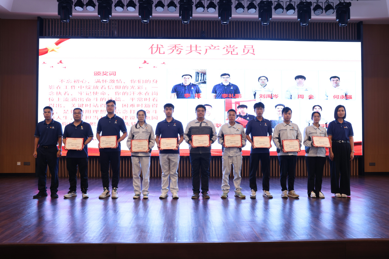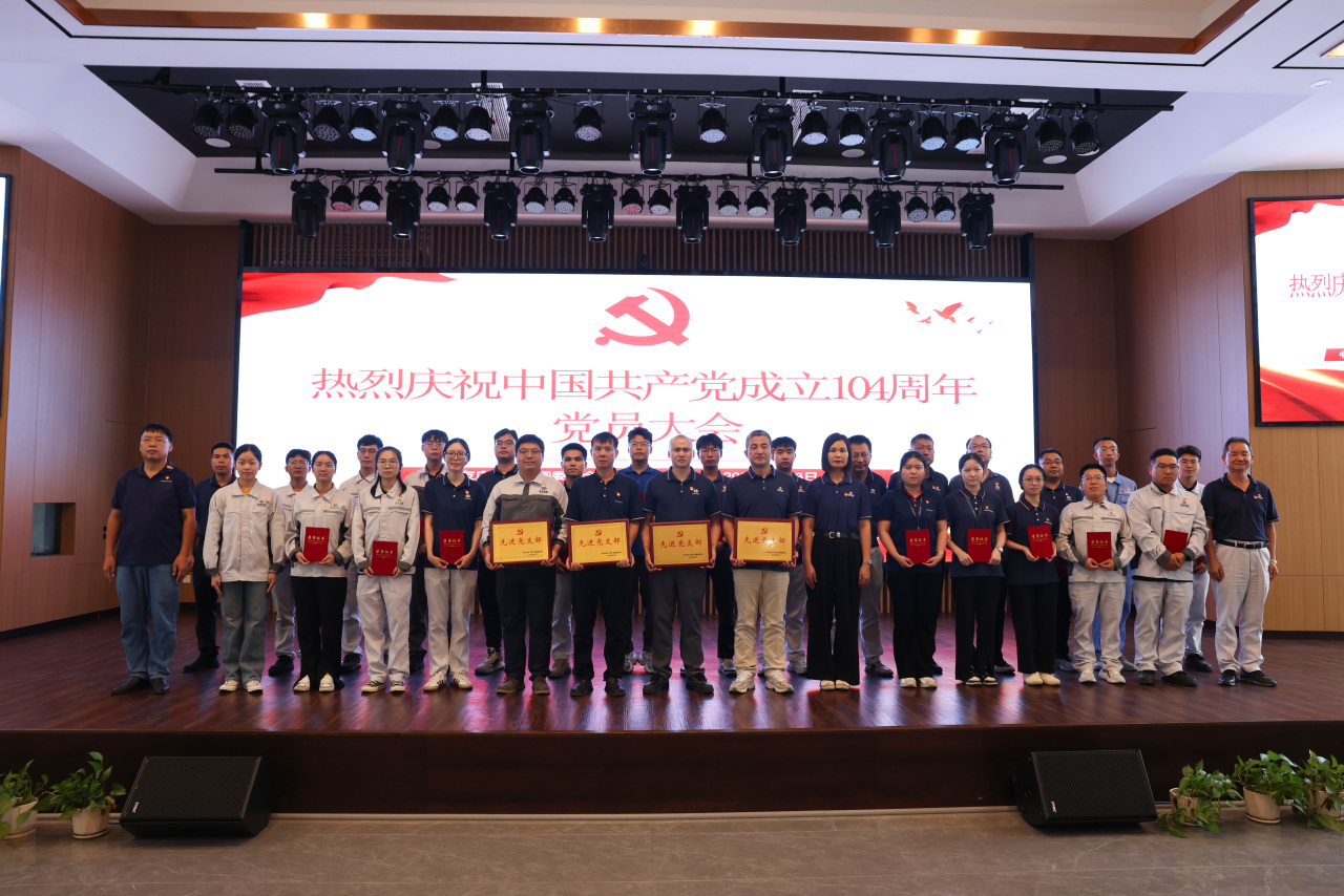 2025年7月3日,中共華友廣西產業園委員會隆重召開慶祝中國共產黨成立104周年黨員大會,園區在冊黨員及發展對象80余人齊聚一堂,共同回顧黨的光輝歷程,展望未來工作方向。會議全面總結了2024年園區黨建工作成果,并部署了2025年重點工作任務,進一步凝聚思想共識、激發奮進力量。