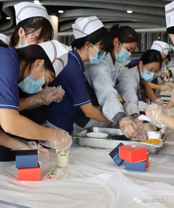 整裝完畢,在面點師傅的教學下,2023屆大學生們開始了手工月餅之旅。搓餡料、包餡、模具按壓……大學生們分工明確、有條不紊,興高采烈地交流制作方法,分享自己制作的獨特造型。在不斷的歡聲笑語中,一個個小巧精致的月餅新鮮出爐。