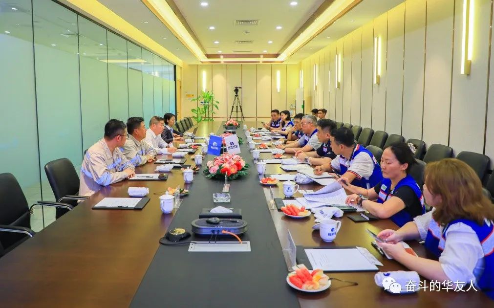 黃善云副總經(jīng)理代表印尼鎳產(chǎn)業(yè)集團(tuán)向謝偉副行長(zhǎng)一行蒞臨指導(dǎo)表示歡迎,對(duì)印尼華越等項(xiàng)目給予的關(guān)心支持表示感謝,同時(shí)介紹了項(xiàng)目的建設(shè)發(fā)展歷程、戰(zhàn)略意義及當(dāng)前的運(yùn)營情況。華越項(xiàng)目充分貫徹“綠色+生態(tài)”設(shè)計(jì)理念,集有色金屬冶煉和化工提煉于一體,具有低成本、低能耗、綠色環(huán)保、低碳排放等多重優(yōu)勢(shì)。華越的建設(shè)和投產(chǎn),創(chuàng)造了當(dāng)前世界規(guī)模最大、建設(shè)速度最快、達(dá)產(chǎn)時(shí)間最短的行業(yè)紀(jì)錄。項(xiàng)目于今年9月刷新了單月產(chǎn)能超設(shè)計(jì)產(chǎn)能40%以上的新紀(jì)錄,這是銀企深入合作產(chǎn)出的豐碩成果,希望未來浦發(fā)銀行一如既往的支持華友印尼項(xiàng)目建設(shè)發(fā)展,共同為新能源鋰電事業(yè)賦能蓄勢(shì)。