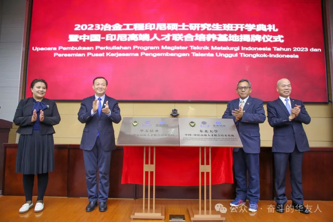 ▲“華友鈷業—印尼海統部—東北大學”首屆三方冶金工程印尼碩士研究生班開學典禮舉行。