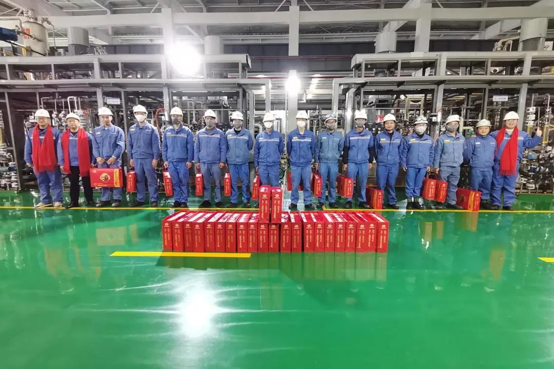 祥龍辭歲,金蛇起舞。1月27日,在新春佳節即將到來之際,集團高級副總裁、新能源產業集團總裁陳要忠,新能源產業集團副總裁吳孟濤、李天成等領導代表公司向春節期間堅守一線的員工送上了濃濃的關懷和溫暖,對他們舍小家、顧大家的崇高精神表示衷心感謝,同時也勉勵大家筑夢拼搏、扎根崗位、奮勇向前,為公司高質量發展貢獻智慧和力量。
