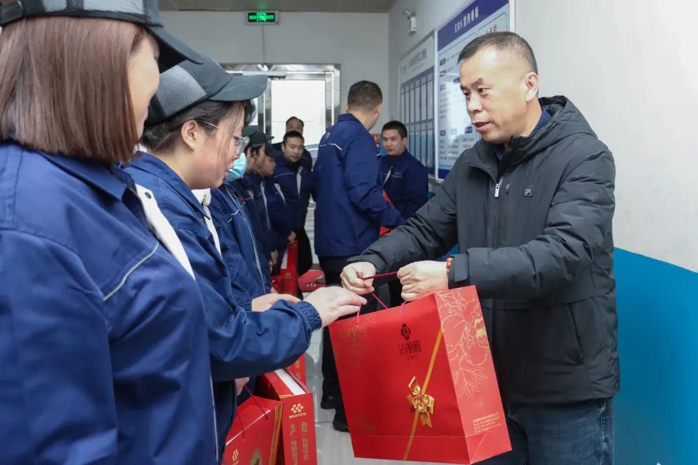 1月25日上午,成都基地領導走進生產車間,慰問春節期間堅守崗位的一線職工,為奮戰在一線的勞動者們送上新春禮物與祝福。