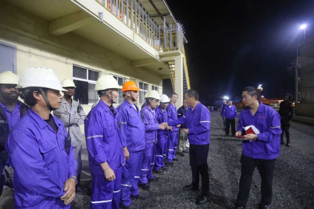 非洲資源產業集團領導一行,帶著公司滿滿的關懷,奔赴各個值班崗位。每到一處,領導們都與員工親切握手,將承載著美好祝福的紅包和物資送到他們手中,讓堅守在異國他鄉的員工們感受到家一般的溫暖。