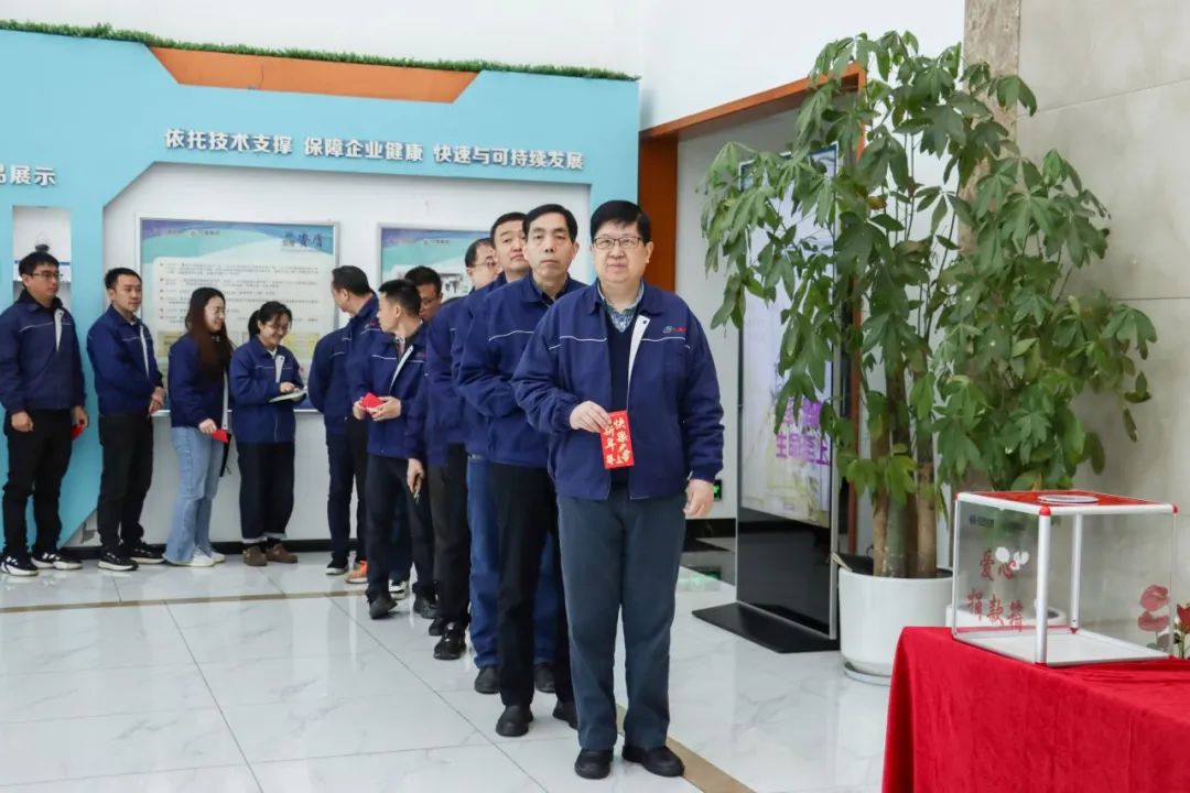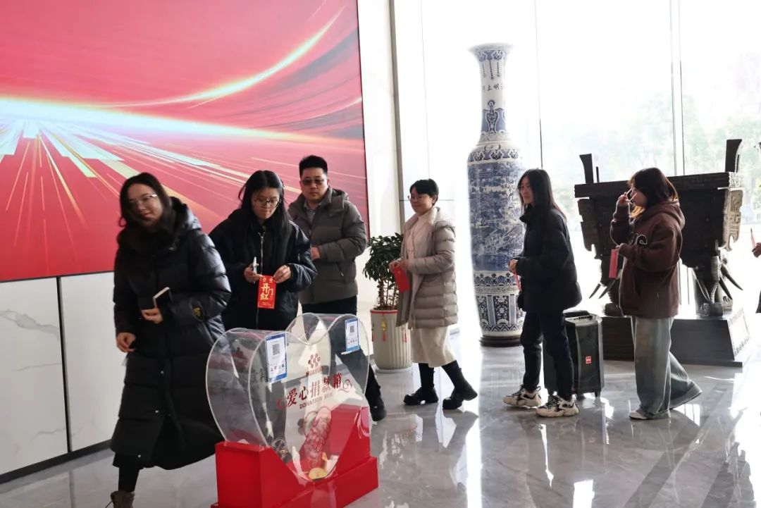 2025蛇年新氣象,公司總部愛心募捐活動在華友研發大樓一樓大廳舉行,早上八點剛過,來自各部門的干部員工在大廳就已排起隊伍。