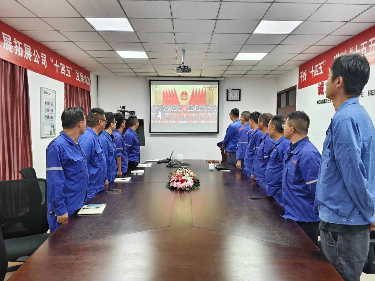 3月5日上午9時,十四屆全國人大三次會議開幕會在北京人民大會堂舉行。華友鈷業董事長陳雪華作為全國人大代表,現場聆聽政府工作報告,公司組織員工集中收看開幕會盛況,共同見證國家政治生活中的這一重要時刻,深入學習和領會兩會精神。