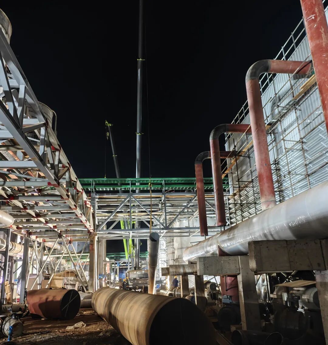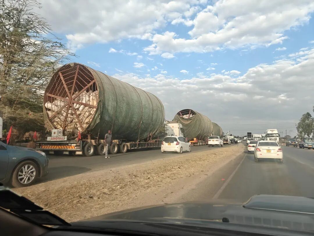 而這座“巨龍”的誕生之路,布滿荊棘。2025年6月24日,轉(zhuǎn)型窯首吊現(xiàn)場,起重指揮員的哨聲劃破長空。直徑5.6米、長達110米的轉(zhuǎn)型窯被切割成11段,歷經(jīng)三個月的海上漂泊才運抵現(xiàn)場。“那艘船中途接到臨時任務(wù),在海上多漂了兩個月。這種完全不可控的物流是我們項目建設(shè)中的‘頭號大敵’”鋰鹽項目部副總經(jīng)理苦笑著搖頭,“我們每天都盯著船舶軌跡圖,心情就像坐過山車。”項目建設(shè)有著復(fù)雜的物流鏈路:從國內(nèi)發(fā)出的貨物經(jīng)過長途海運,經(jīng)過南非德班港卸貨,完成清關(guān)后,還需再次在津巴邊界進行二次通關(guān)。此后,才是更為嚴峻的、長達1700公里的陸路運輸。“從德班到現(xiàn)場的這1700公里,每一步都充滿變數(shù)。”他補充道,語氣凝重,“車禍、超限運輸?shù)膶徟⒛酥廉數(shù)貜?fù)雜的人文環(huán)境,任何一環(huán)出現(xiàn)意外,都可能導(dǎo)致工期無限期延遲。”