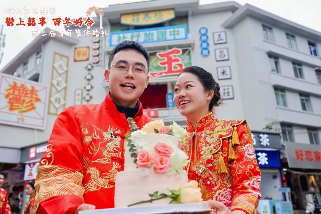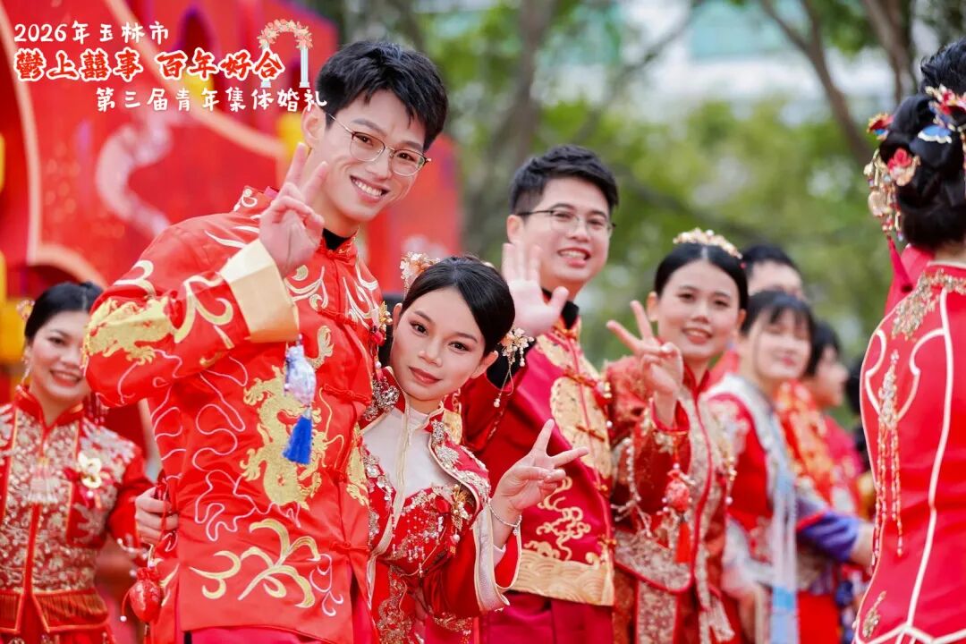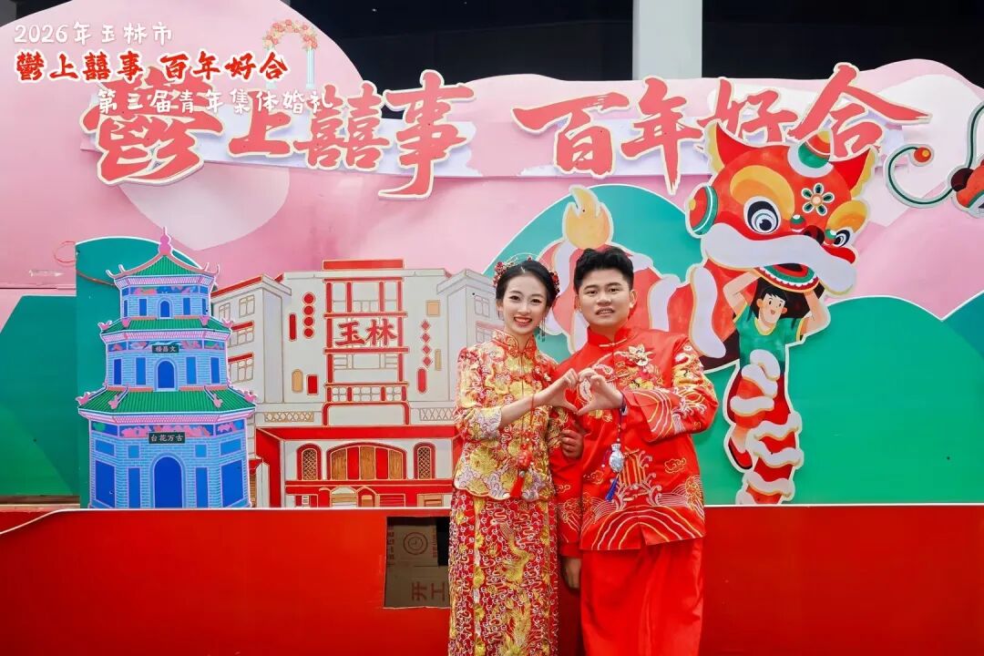 近日,2026年玉林市“鬱上囍事 百年好合”第三屆青年集體婚禮舉行,共同見證100對新人喜結連理。玉林市委書記王琛出席并為新人證婚。
